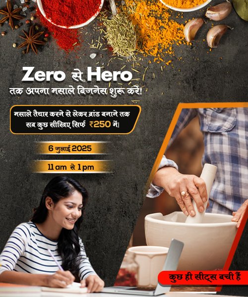 क्या आप घर से काम करने वाली गृहिणी हैं? क्या आप मसाले बनाने का व्यवसाय शुरू करने के बारे में सोच रही हैं, लेकिन आपको यह नहीं पता कि कहां से शुरुआत करें? या आप एक स्टार्टअप कंपनी चला रहे हैं और अपने मसाले के व्यवसाय को बढ़ाने की योजना बना रहे हैं? तो यह वेबिनार आपके लिए है!