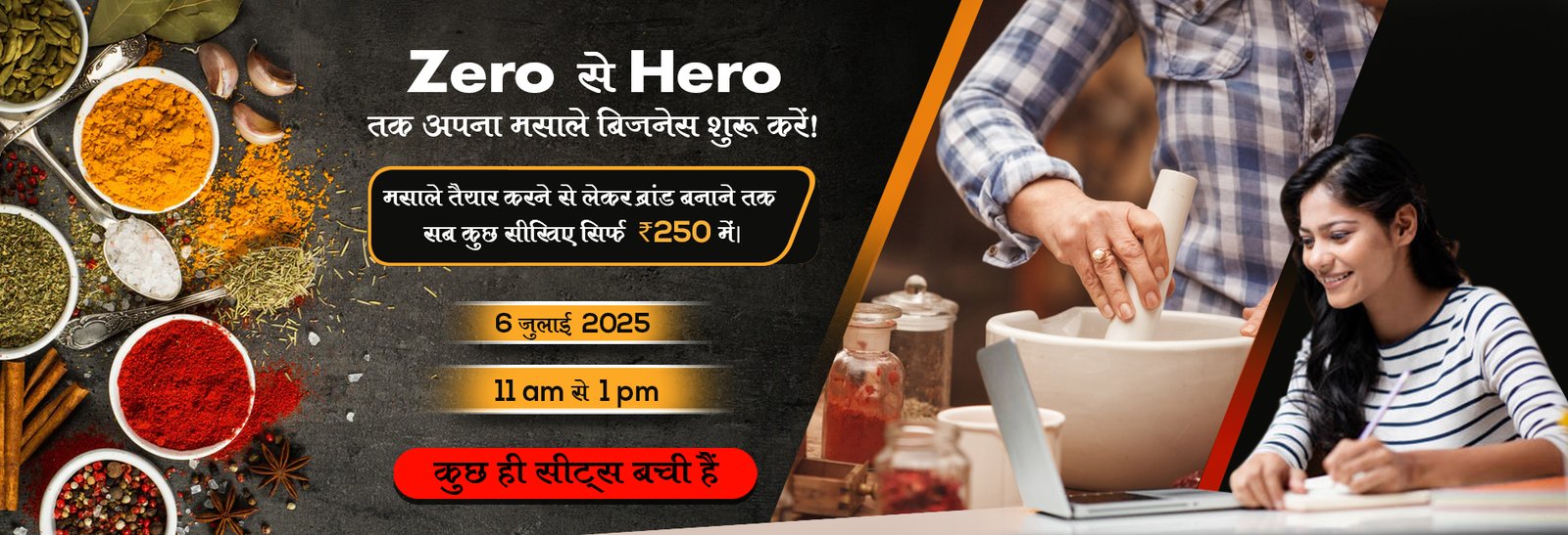 मसाले तैयार करने से लेकर ब्रांड बनाने तक सब कुछ सीखिए सिर्फ ₹250 में।